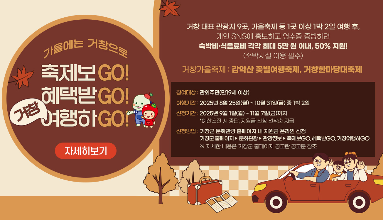 거창군 홈페이지 > 문화관광 > 관광정보 > 축제보GO,혜택받GO,거창여행하GO