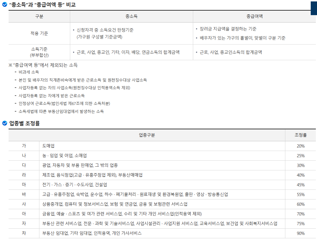 ※ 총소득이란? : 근로소득(총급여액), 사업소득(총수입금액 × 업종별 조정률), 종교인소득(총수입금액), 기타소득(총수입금액 - 필요경비), 이자 · 배당 · 연금소득(총수입금액)을 합한 금액